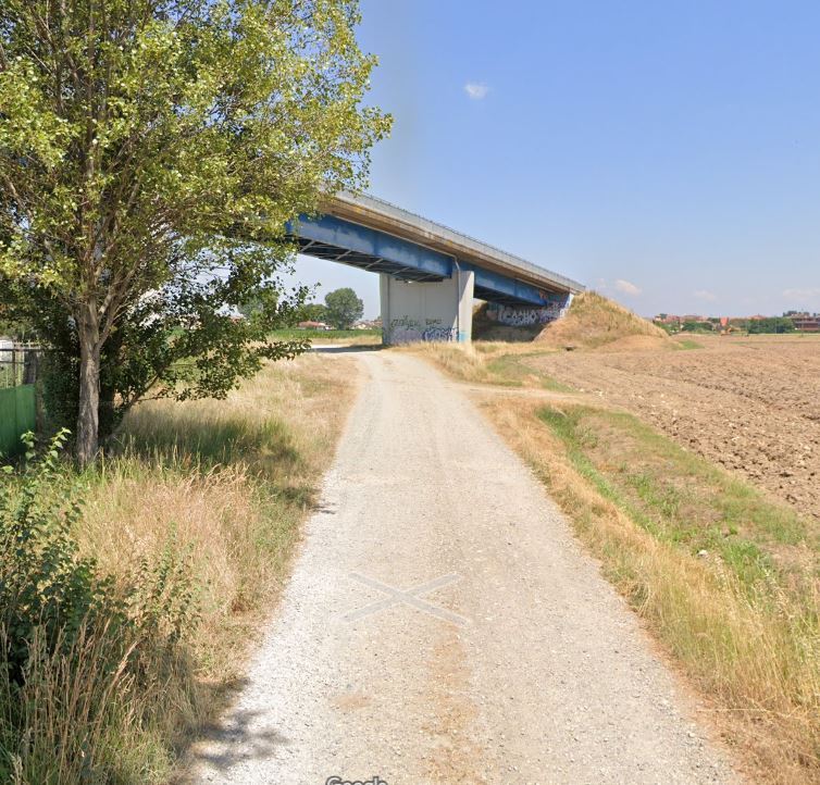 Dopo la visita a questo gioiello medioevale, proseguiamo lungo la strada di campagna che punta a sud, costeggiando la cascina di san Bassiano. Dopo una curva di 90 gradi a ovest ci dirigiamo verso un cavalcavia. Per superare ferrovia e Autostrada dobbiamo superare la strada sopraelevata e tornare indietro verso nord per intercettare la strada appena passata sotto e quindi prenderla (è l’unico passaggio) e quindi ripuntare a sud lungo questa strada fino a Borgo San Giovanni