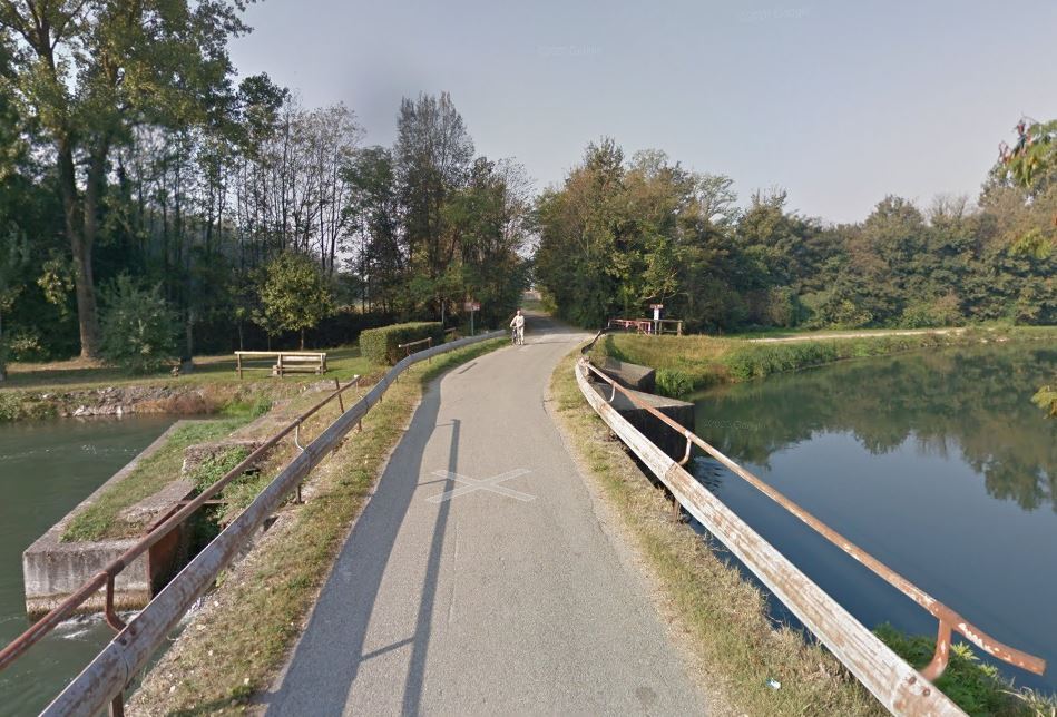 Si prosuegue sempre sulla ciclabile in direzione ovest fino ad incrociare il canale Muzza (lo abbiamo lasciato nella prima tappa all’altezza di Merlino) e approfittando del ponte laterale sulla destra, attraversiamo il canale senza andare sulla strada e riprendiamo il cammino sempre sulla ciclabile, sempre su lato sinistro. Se siamo stanchi alcune panchine ci daranno un ottimo punto si sosta.